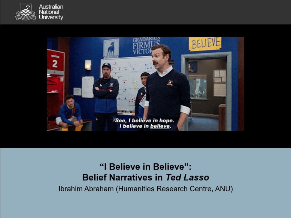 (74) “‘I Believe in Believe’: Belief Narratives in Ted Lasso.” 46th Annual Conference of the Australian Association for the Study of Religion, Australian National University, 09-10.12.2021.